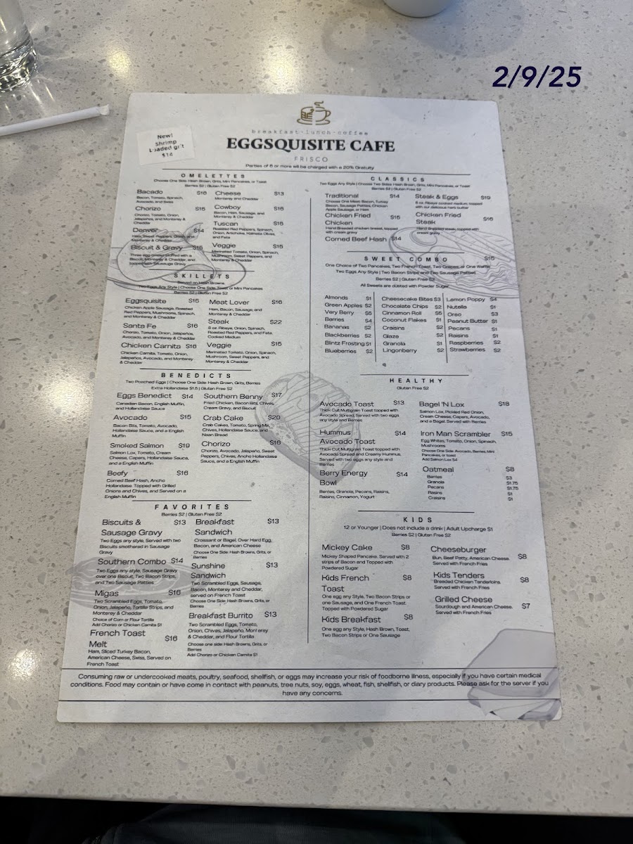 Customer reviews praise the friendly service, fresh ingredients, and cozy atmosphere, making Eggsquisite Cafe a must-visit for brunch lovers in Frisco!